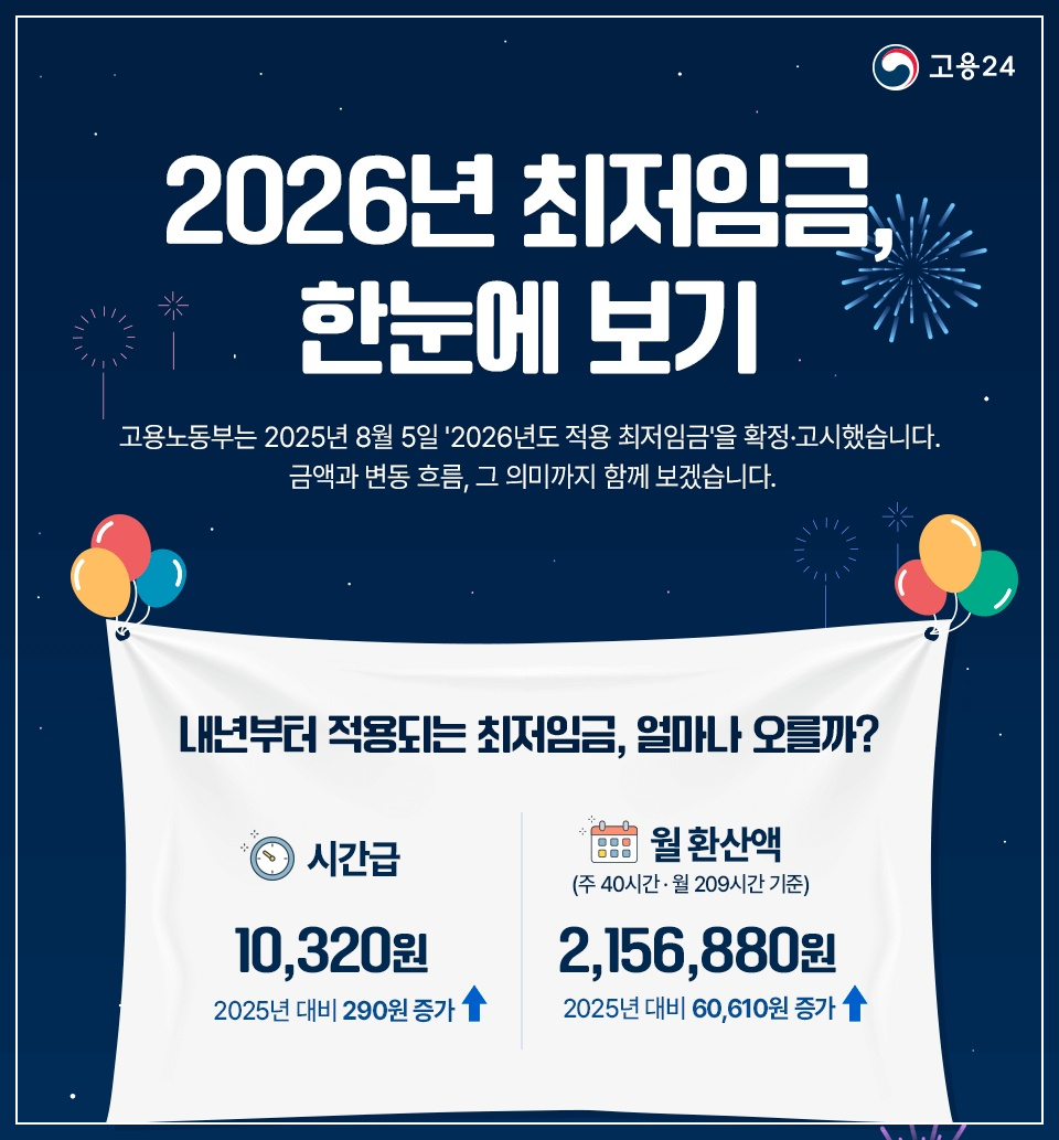 2026년부터 새로운 최저임금이 적용됩니다.